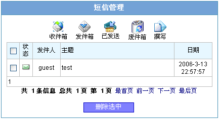 十三、留言及短信 点击左侧的“留言管理”链接即会显示以下页面: |